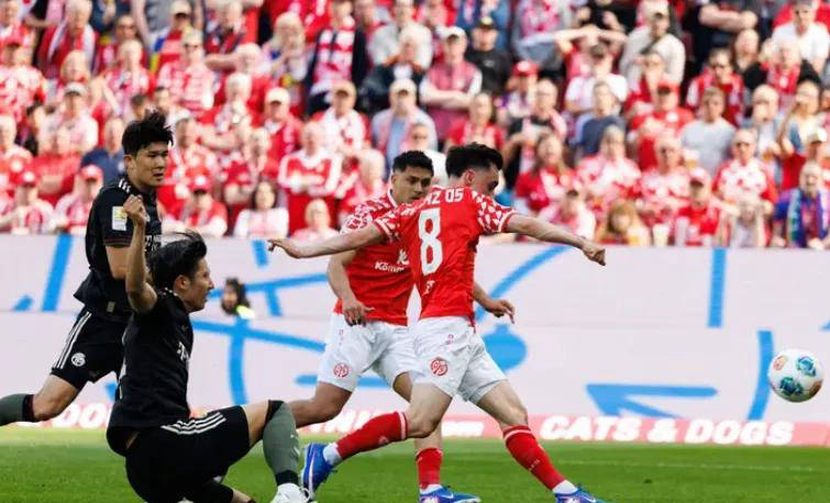 因欧冠即将迎战巴黎圣日耳曼,主帅孔帕尼选择在联赛中轮休部分主力球员,将重点放在接下来的欧冠赛事。他表示:“即便我们已提前夺冠,仍会全身心准备应对美因茨。”但面对对手,美因茨利用拜仁替补阵容的漏洞迅速展开攻势。第15分钟,佐野海舟从右路精准传中助攻科尔破门,打破拜仁僵局;第29分钟,格雷罗中场失误被断球后,美因茨快速反击,内布尔禁区内抢点补射得分,将比分扩大为2比0;临近半场补时阶段,佐野海舟劲射击中横梁,贝克尔机警补射再下一城,半场结束拜仁已0比3落后。面对如此局面,拜仁主教练乌尔比希显得极为无奈和尴尬。